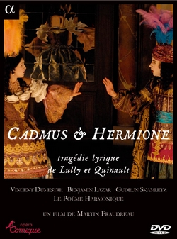 Et, pour conclure sur cette mise en scène pompeuse - au sens premier du terme -, on mettra en avant l'inventivité, l'originalité et l'audace dont Benjamin Lazar et ses compagnons ont fait preuve. Non, les décors – plus modestes - ne correspondent pas servilement à ceux de Vigarani ou Bérain tels que conservés à dans les esquisses de Paris ou Stockolm. Non, les costumes ne copient pas non plus les dessins au lavis des mêmes qui montrent une inspiration nettement plus "antique" avec casques empanachés et tuniques à la grecque. Et les déhanchements peu catholiques des Africains n'ont sans doute pas grand-chose à voir avec les chorégraphies de 1673. Il y a donc bien une réappropriation totale de l'œuvre, mais avec le souci constant de respecter son esprit. Et il faut rappeler une fois encore le rôle primordial de l'éclairage à la bougie et des miroirs dans la confection de cette atmosphère feutrée, dorée et hésitante, d'une extrême poésie, écume dansante que l'œil de la caméra n'a pas réussi à capter (la lumière semble beaucoup plus claire et plus lisse que lors des représentations). Les solistes de cette tragédie travaillent avant tout comme une équipe, sans la césure franche entre les premiers rôles "starisés" et les autres. Se pliant à la vision sensible et très déclamatoire de Vincent Dumestre, les chanteurs se font avant tout acteurs, prenant un soin maniaque à placer les accents des mots, à respecter la prosodie et ses nombreuses respirations. Le texte, même en prononciation restituée, possède une limpide clarté (le test en est aisé – et le Minotaure – il suffit d'enlever les sous-titres). On ne trouvera point ici de grandes envolées extraverties et violentes, de déchaînements de colère, de halètements de douleurs, de large phrases mélodiques pseudo-mozartiennes. La ligne directrice a été la mesure, la retenue sans affectation ou immobilisme, ainsi que la noblesse surhumaine des sentiments, car jamais les personnages ne se rabaissent à la banalité du probable, juchés sur les nuages de leur Olympe mythologique. Dit abruptement, ce Cadmus et cette Hermione ne seront jamais vos voisins de palier. Claire Lefilliâtre laisse admirer un timbre d'une confondante clarté, avec des aigus dynamiques et transparents ("Amour, voy quels maux tu nous fais") et des ornements impeccables quoique copieux. André Morsch, artiste allemand, a réussi à adopter une diction parfaite que plus d'un natif lui envierait, et campe un Cadmus racé et très épris, plus rêveur que guerrier. Arnaud Marzorati, fidèle à sa truculence habituelle, surjoue un peu Arbas, cabotinant à qui mieux mieux avec la nourrice travestie de Jean-François Lombard. La Charite d'Isabelle Druet, mutine et piquante, révèle toutefois une émission un peu tendue et des aigus durcis. En ce qui concerne l'interprétation musicale proprement dite, le Poème Harmonique a considérablement mûri depuis le Bourgeois Gentilhomme. L'orchestre sonne désormais ample et large, avec une excellente cohésion des pupitres. Les tempi sont équilibrés, dénotant cette noble élégance très "William Christie" qui laisse la rotondité mélodique s'épancher, insiste sur la répétition des motifs, marie les timbres. Vincent Dumestre a en outre le souci de la pulsation interne de chaque mouvement (cf. irrésistible chaconne africaine précitée), avec une basse continue dynamique et structurante. Ce n'est pas le Lully le plus farouchement énergique qu'on pourrait entendre, mais un déroulé logique, musical, au charme prenant et insidieux. Les cuivres et les percussions apportent la touche de martiale majesté, les violons un lyrisme pudique lors des ritournelles. On soulignera aussi la très bonne balance de la captation qui permet de saisir les nuances des cordes pincées. Enfin, Martin Flandreau dirige avec application une caméra qu'on eut aimée plus posée. Les coupes et les plans moyens sont relativement fréquents, et l'habitude de glisser un regard appuyé à certains protagonistes tandis que les chanteurs sont hors champ troublante. Il y a de nombreux moments, surtout lors du Prologue, où l'on se surprend à tendre le cou vers autre chose que ce que la caméra offre à notre vue. Le recours à de vastes plans séquence, des coupes réduites et calées sur les phrases musicales, permettraient une captation plus naturelle, quoique moins "cinématographique". A l'occasion de la sortie de ce DVD, Alpha a compensé l'absence totale de bonus par la mise en ligne d'un site spécial où l'on retrouvera l'intégralité du livret et de nombreuses informations sur l'œuvre et les artistes. Et l'on souhaite vivement que le succès attendu et mérité de cette parution pousse l'éditeur à réaliser une édition luxe où l'on pourrait suivre les coulisses de la production, qu'il s'agisse des décors, de l'éclairage, ou des répétitions, et où Benjamin Lazar et Vincent Dumestre nous entretiendraient de leurs choix interprétatifs. Tout en espérant ardemment que ce duo inspiré poursuive son voyage au pays de la tragédie lyrique (Bellophéron par exemple, n'attend que leur talent).