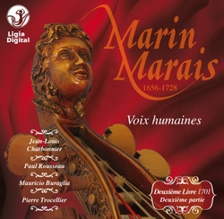 Genre : musique de chambre Marin MARAIS (1656-1728) "Les Voix humaines" Deuxième Livre (1701), Deuxième Partie Jean-Louis Charbonnier (basse de viole, violone), Paul Rousseau (basse de viole), Mauricio Buraglia (théorbe), Pierre Trocellier (clavecin), Hélène Decoin (violon), Philippe Suzanne (flûte traversière).