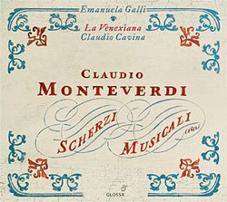 Claudio Cavina a constitué sa version des Scherzi Musicali autour des pièces rassemblées sous ce titre en 1632. Il y a rajouté des airs comme le Lamento d’ Ariana, ou bien Ohimè ch’io cado. Ici, au-delà du plaisir des musiciens évident, rien ne se détache vraiment à l’écoute de ce disque, si ce n’est peut être un certain empâtement oscillant entre le blues et la chanson des rues dans Si dolc’è il tormento ou une tentative d’introduire un rythme syncopé dans Ohimè ch’io cado mais sans la fluidité qu ‘y insufflait Christina Pluhar. Si son timbre est limpide et sa prosodie extrêmement précise, Emanuela Galli s’autorise plus de liberté et de nuances sur les tempi que sur des couleurs dramatiques ou mélancoliques. La Venexiana lui offre une grande clarté instrumentale et le charme de sa musicalité pour développer sa ligne de chant. La basse continue très riche, n’y est jamais lourde mais bien au contraire extrêmement délicate. Les théorbes, la harpe, la guitare baroque, tous sont des compagnons fidèles qui par un mot, une phrase apportent une douce éloquence, une poésie fleurie aux ornements de la chanteuse. C’est le Lamento d’ Ariana qui conclue cet enregistrement. Les interprètes y semblent toujours plus en recherche d’une tendre émotion, travaillant plus sur les subtiles couleurs du chagrin que sur l’intensité dramatique. Ce CD s’écoute avant tout comme si l’on se trouvait au milieu des musiciens s’accordant une pause musicale entre deux madrigaux "sérieux" ou durant un récital. Il est plein de charmes mais comparé à la version de Maria Cristina Kiehr et du Concerto Soave chez Harmonia Mundi, il souffre toutefois d’un manque de contraste entre les différentes canzonette. La Venexiana reste indétrônable dans les livres de madrigaux, elle rend ici hommage au génie venu des rues, mais reste trop aristocratique pour en livrer les saveurs primaires que d’autres ont su y mettre.