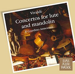 Genre : musique pour orchestre Antonio VIVALDI (1678-1741) Concertos pour mandolines, concertos pour luth Luca Pianca (archiluth), Duilo Galfetti (mandoline), Enrico Onofri (violon et viole d'amour) Il Giardino Armonico Direction Giovanni Antonini 64'46, Teldec, 1993.