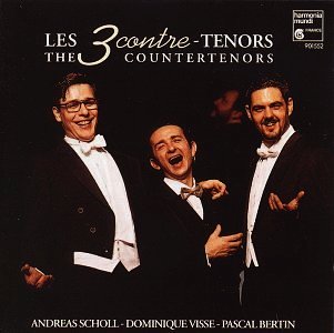 Les Trois contre-ténors ou la riposte irrésistible des contre-ténors à la surmédiatisation des "Trois ténors". © Harmonia Mundi