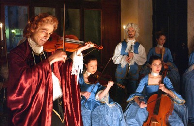 En 2003, les spectateurs de salles obscures découvraient enfin la vérité sur la mort du grand Bach. Le Cantor de Leipzig, s'il n'avait pas succombé aux suites d'une calamiteuse opération oculaire, aurait sans nul doute été assassiné par la criminelle maladresse de Jean-Louis Guillermou, soi-disant réalisateur de cinéma. Hélas, l'homme, quelques quatre années plus tard, s'avère être l'un des plus dangereux récidivistes du moment. Et son amour pour la musique baroque (et pour les frites surgelées) n'a d'égal que sa capacité à polluer nos écrans larges par une production qui frise encore une fois l'amateurisme adolescent le plus complet. La victime sera cette fois le Prêtre Roux, Antonio Vivaldi, catapulté "Prince à Venise", et nous remercions au passage un vigilant membre de l'équipe du film pour avoir évité que ce long-supplice ne s'intitule "Antonio Vivaldi, un doge à Venise"... Par rapport à "Il était une fois Bach", le réalisateur bénéficie pourtant de l'admirable décor de la Sérénissime : l'eau dormante, les gondoles, la lumière d'Italie. Les reflets changeants et satinés de la pierre qui s'effrite, la douceur de l'après-midi vaporeux, les volutes de pierre qui s'enroulent à chaque piazetta pouvaient nourrir des espoirs insensés. Mais la caméra abuse de ce cadre sublime avec la voracité d'un touriste japonais, quitte à étouffer dans ses bras trop aimants tous les anachronismes du monde. Côté cadrage et esthétique, la vidéo du voyage de noces de Tante Huguette a dû servir de source d'inspiration : l'œil instable de la caméra n'hésite pas à couper la tête des acteurs lorsqu'ils parlent, à rattraper au vol un plan bâclé, à donner l'impression d'assister au tri journalier des rush avant montage. La lumière est brute, digne d'un téléfilm de mauvaise facture qui ignorerait l'emploi de réflecteurs.