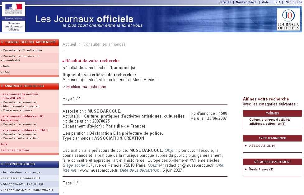 Muse Baroque est également une association loi 1901, bien que le fonctionnement de la revue et celui de ladite association soit clairement distincts. Composition du Bureau